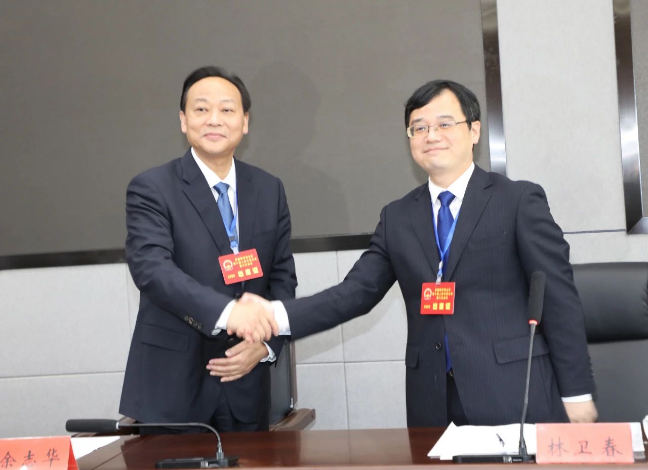 选举结果公布时,林卫春与余志华紧紧握手,祝贺他当选珠山区第十届人大常委会主任,会场响起热烈的掌声。
