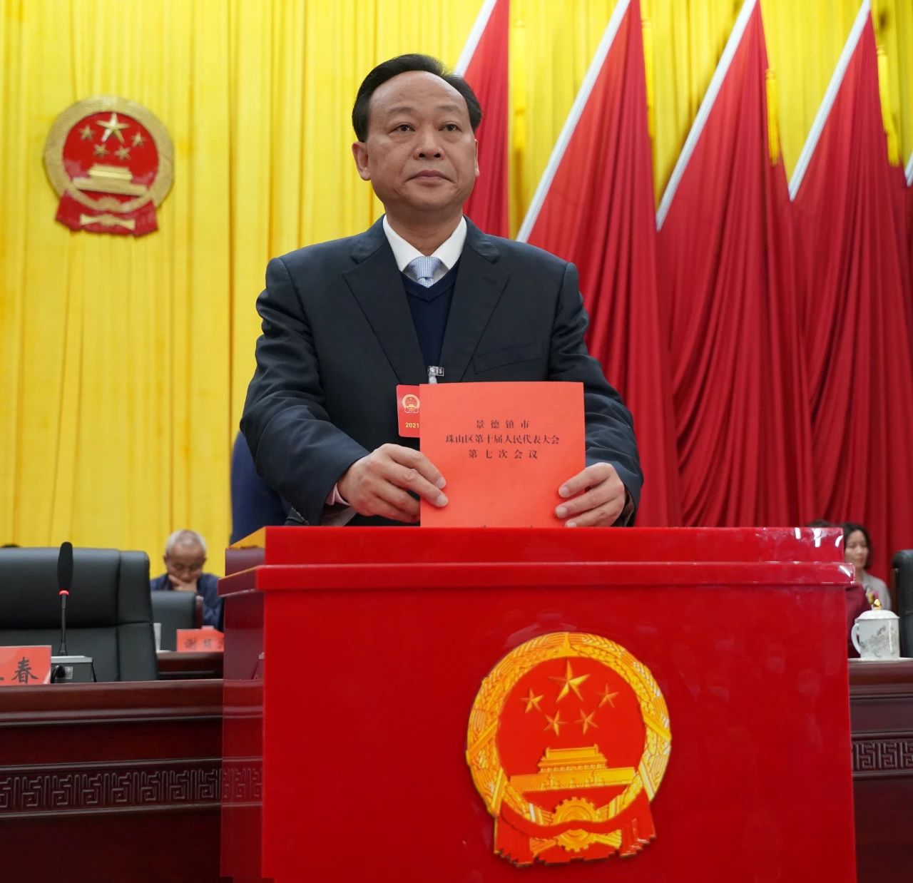珠山区第十届人民代表大会第七次会议在雄壮的国歌声中胜利闭幕。